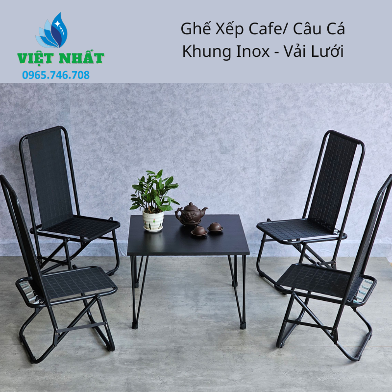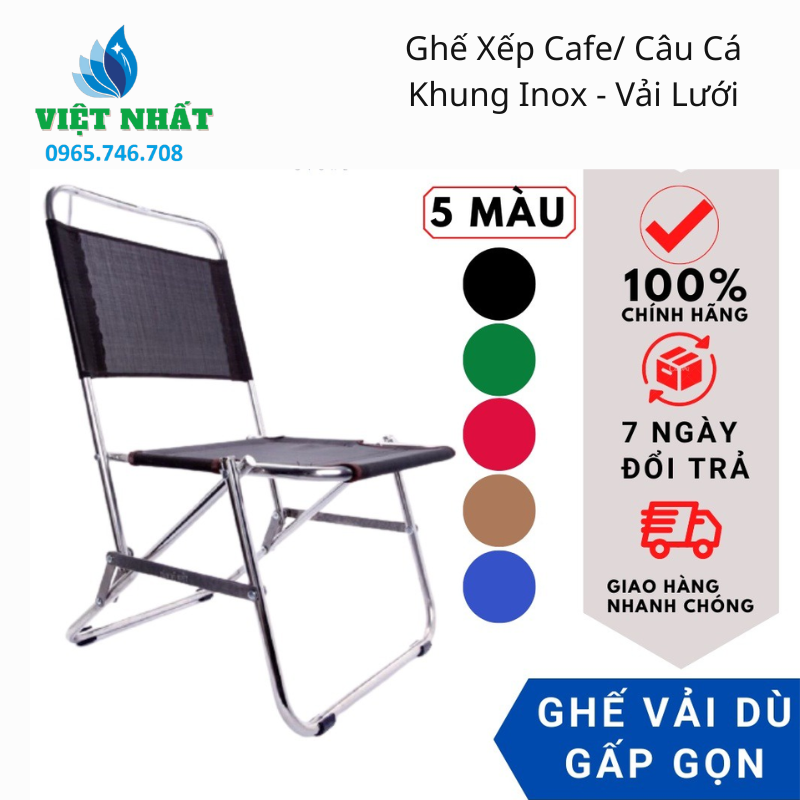 Dù bạn là chủ quán cafe đang tìm kiếm giải pháp nội thất bền bỉ hay là một người đam mê dã ngoại cần sự gọn nhẹ, sản phẩm này đều đáp ứng xuất sắc mọi tiêu chí. Hãy liên hệ ngay với chúng tôi để cập nhật các màu sắc lưới mới nhất và nhận báo giá sỉ hấp dẫn. Sự thư thái trong từng phút giây thư giãn của bạn sẽ được đảm bảo với Ghế Xếp Cafe/ Câu Cá Khung Inox – Vải Lưới.
