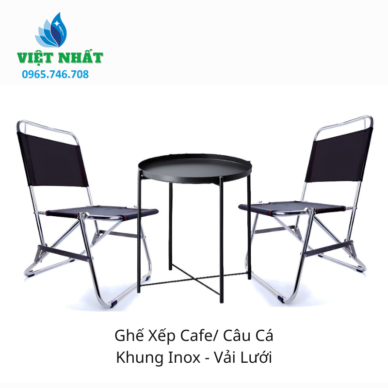 Ghế Xếp Cafe/ Câu Cá Khung Inox – Vải Lưới là sự lựa chọn hàng đầu cho các hoạt động ngoài trời và kinh doanh dịch vụ đồ uống vỉa hè nhờ vào tính cơ động cao và độ bền vượt trội. Với khung thép không gỉ chắc chắn chịu lực tốt kết hợp cùng mặt lưới Textilene thoáng khí, sản phẩm mang lại trải nghiệm ngồi thoải mái, mát mẻ và giải quyết triệt để vấn đề ẩm mốc thường gặp ở các loại ghế vải bố thông thường.