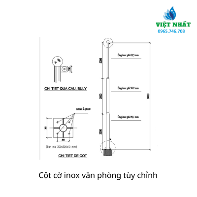 Cột Cờ Văn Phòng Cao 1,7- 3m Inox 304 – Việt Nhất | Xưởng Gia Công Inox Uy Tín Tại Tp.HCM