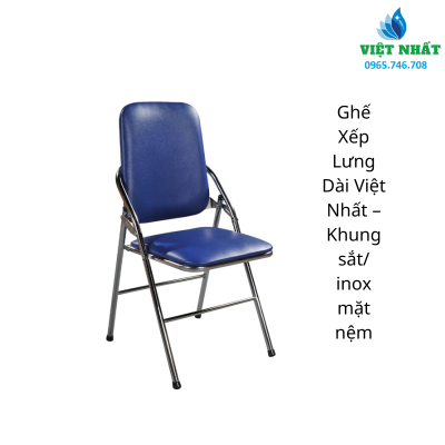 - Ghế chân xếp gấp khung sắt, đệm tựa ghế bọc PVC (simili).