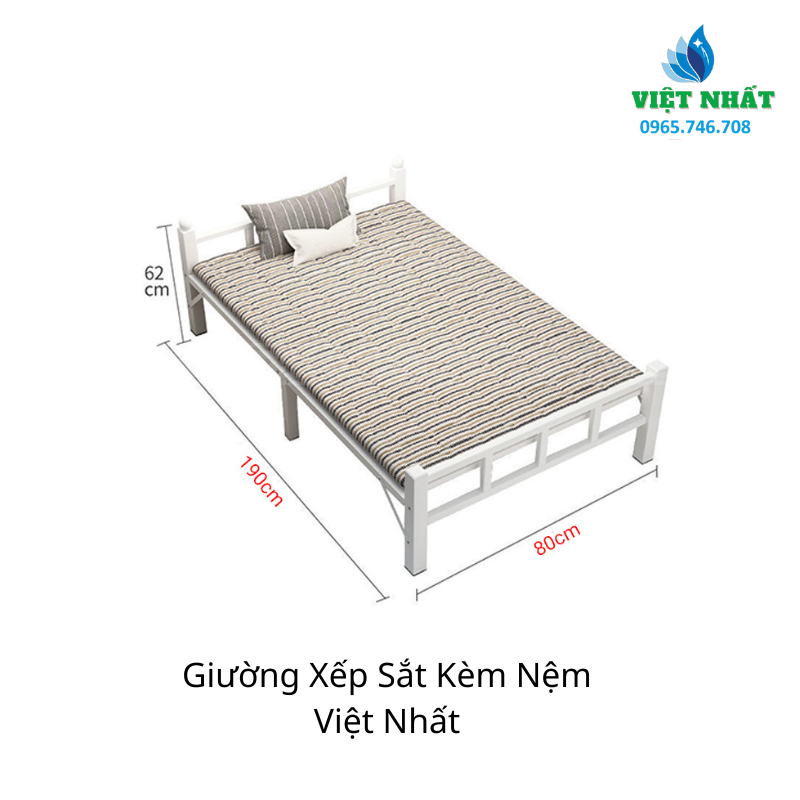 Giường xếp sắt kèm nệm của Nội Thất Việt Nhất không chỉ là một sản phẩm tiện dụng, chắc chắn và bền đẹp mà còn có giá cả rất hợp lý. Với ba kích thước đa dạng, sản phẩm này đáp ứng được nhu cầu sử dụng của mọi gia đình. Hãy liên hệ ngay với Nội Thất Việt Nhất để sở hữu ngay một chiếc giường xếp sắt kèm nệm, mang lại sự tiện nghi và thoải mái cho không gian sống của bạn. Liên Hệ Mua Hàng, Tư Vấn, Báo Giá:Nếu bạn cần thêm thông tin chi tiết hoặc hỗ trợ, đừng ngần ngại liên hệ với chúng tôi qua hotline hoặc truy cập website để được tư vấn và đặt hàng: