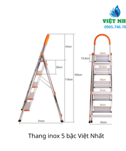 Thang inox Việt Nhất 5 bậc giá tốt mà vẫn đảm bảo chất lượng, bền, đẹp. Thang inox 5 bậc Việt Nhất tiện dụng ở các kho hàng, công ty, xí nghiệp…Được sản xuất từ vật liệu Inox bền đẹp, sáng, sạch, dễ vệ sinh. Qui trình sản xuất và kiểm tra chất lượng hiện đại, tiên tiến. Thang mở chữ A, có nút cao su chống trượt an toàn.