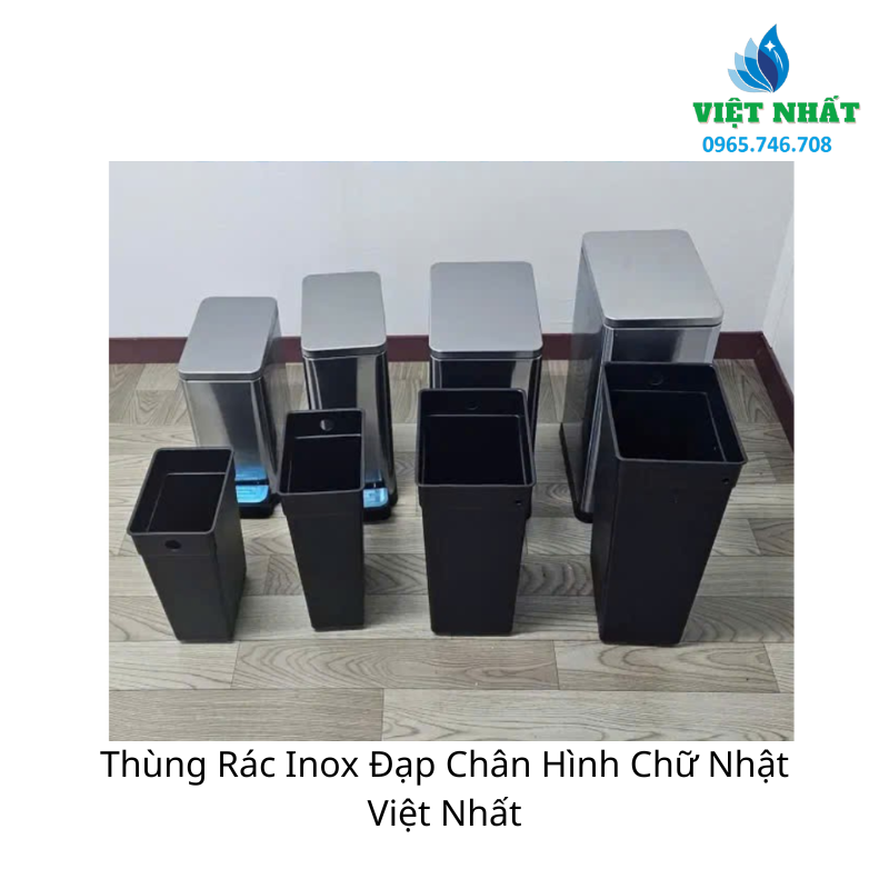 - Chất Lượng Không Đối Thủ: Sử dụng inox cao cấp, thùng rác hình chữ nhật từ Việt Nhất không chỉ đẹp mắt mà còn đảm bảo độ bền và khả năng chống mùi tuyệt vời.
