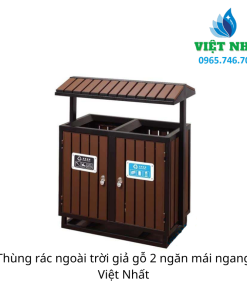 Thùng rác ngoài trời giả gỗ 2 ngăn mái ngang Việt Nhất – Giải pháp hoàn hảo cho môi trường sạch sẽ