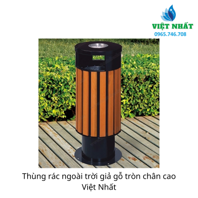 Thùng rác ngoài trời giả gỗ tròn chân cao Việt Nhất