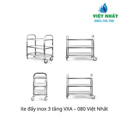 Xe đẩy inox 3 tầng VXA – 080 là giải pháp “đa năng hóa” quy trình vận chuyển nội bộ, giúp tăng gấp ba hiệu suất làm việc so với các dòng xe 1 tầng hay bưng bê thủ công. Với thiết kế 3 tầng chứa đồ rộng rãi và chất liệu Inox sáng bóng, sản phẩm này là “trợ thủ” đắc lực không thể thiếu trong các Bệnh viện (xe tiêm, xe thuốc), Nhà hàng (xe đẩy thức ăn), Khách sạn (xe dọn phòng) và các Spa thẩm mỹ chuyên nghiệp.